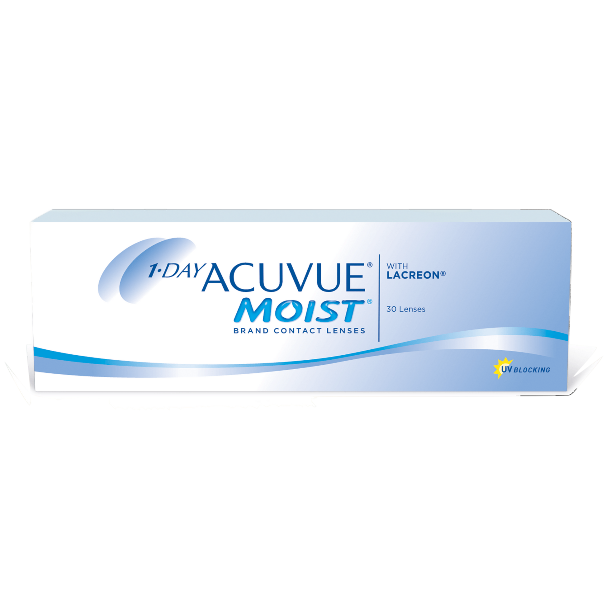 Featuring moisture-rich Laceron technology, 1-Day Acuvue? Moist 30 pack contact lenses provide all day comfort, with the convenience of a daily disposable lenses. Made for everyday wear, the 1-Day Acuvue? Moist 30 pack contact lenses incorporates UV blocking to protect your eyes on a daily basis.