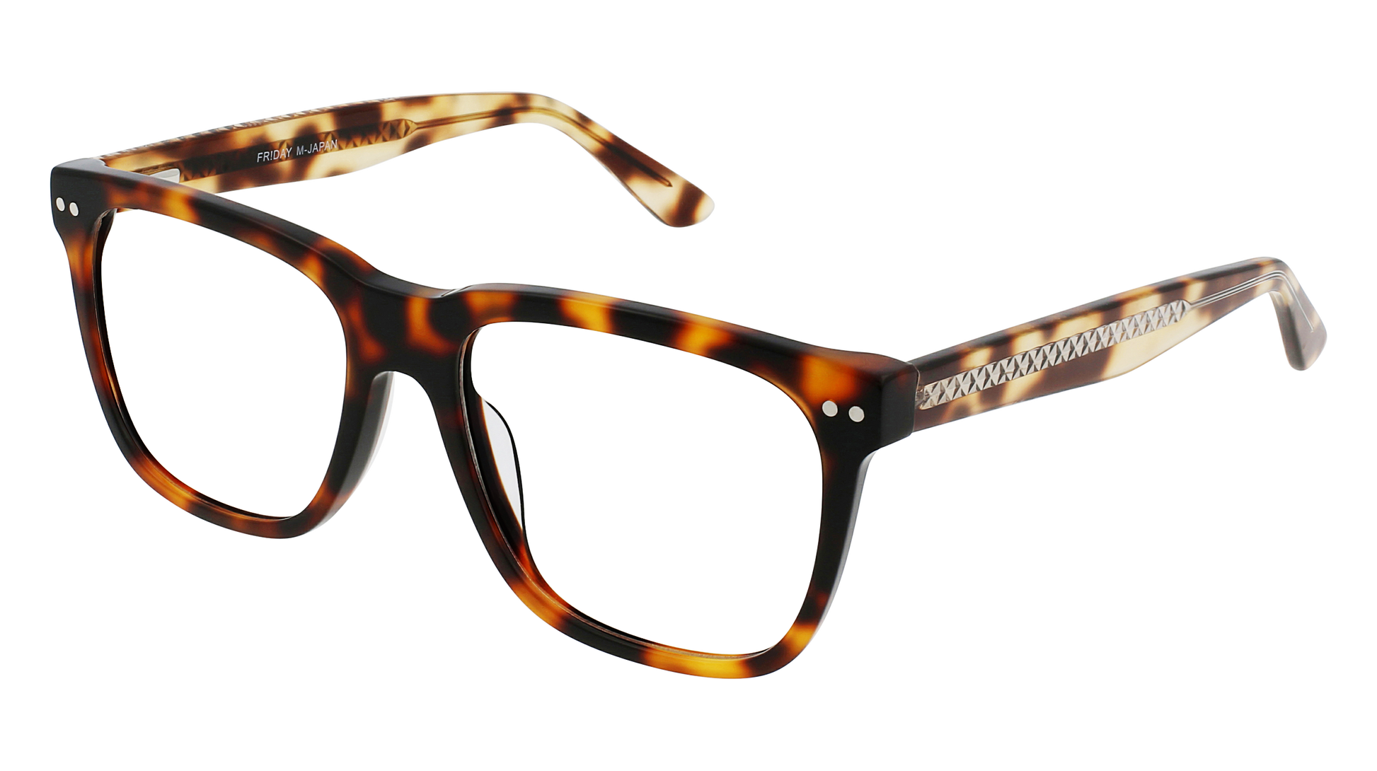 - A stylish, scholarly frame ideal for medium to larger face shapes. Angeles features squarish lenses with unique flattened top in a tortoise colorway with silver rivets at the temples.?