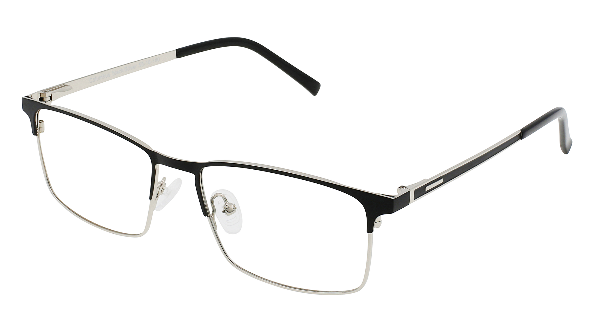 - Columbus is a structured rectangular frame with a high-tech feel. This frame features a black and silver browline and adjustable nose pads.
