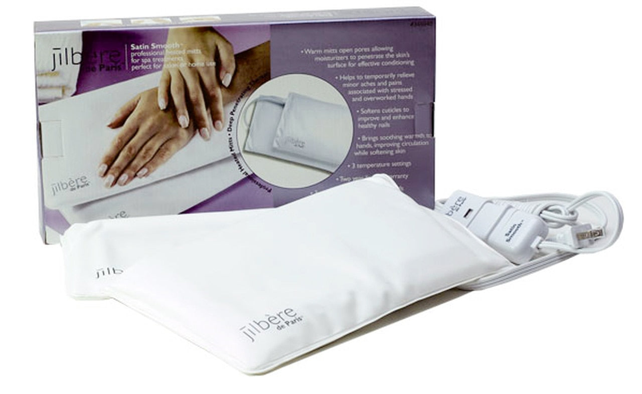 Satin Smooth Professional Jilbere Heated Mitts for spa treatments. Jilbere Professional Heated Spa Mitts are therapy for moisturizing and soothing dry, sore hands.