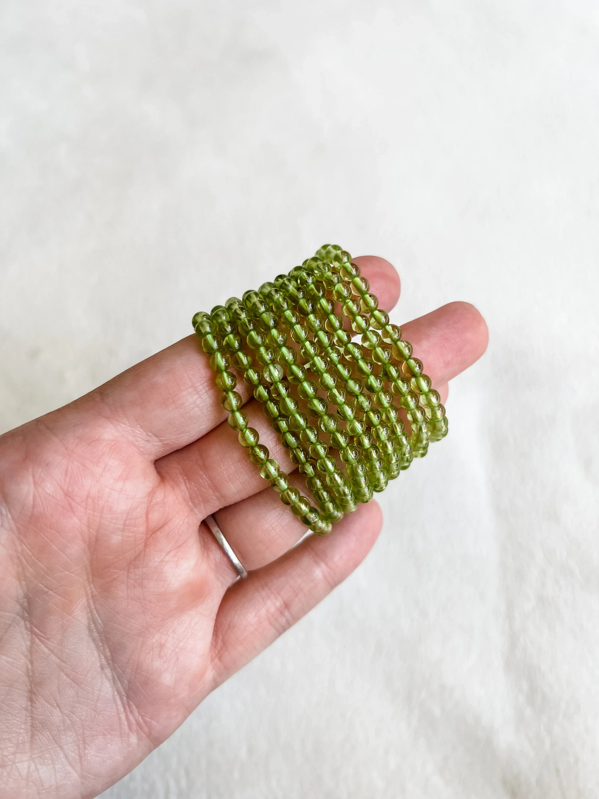 You will receive one Peridot Crystal Stretch Bracelet in the size + bead size and bead shape of your choice. Be sure to review the sizing before adding to your cart! Please review the listing and photos/video carefully. No two crystals are alike and there may be variations in color that we've shown in photos.