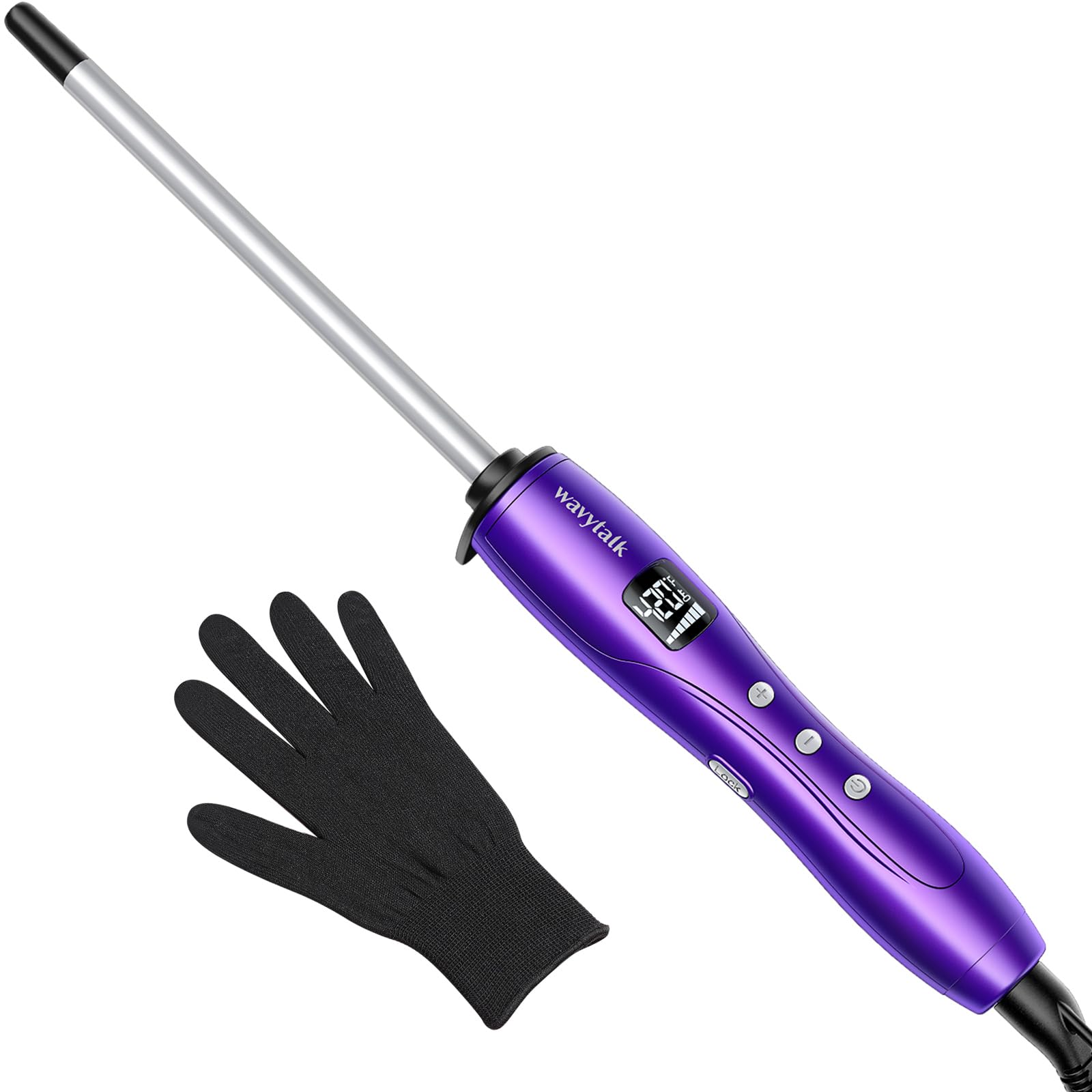 Wavytalk 3/8 Inch Small Curling Wand, Small Barrel Curling Iron for Short & Long Hair, Ceramic Small Wand Curling Iron with Adjustable Temperature, Include Heat Resistant Glove (Purple)